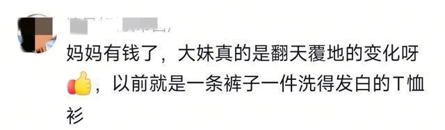 大妹变了,从以前那个动不动哭鼻子的女孩变成了乐观开朗的大女主,穿衣打扮也上升了N个档次,简直是从小土妞变成了白雪公主。 妈妈有钱,孩子是真的有钱,爸爸有钱,那就不一定了!